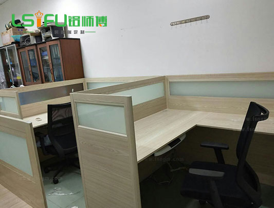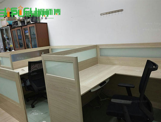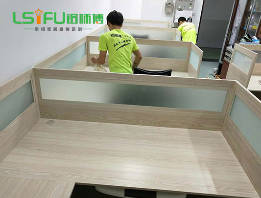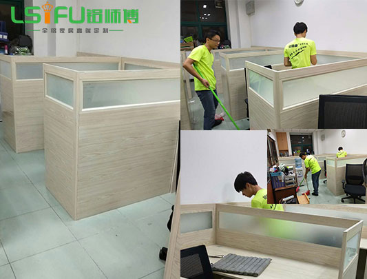 鋁師傅在安裝辦公室全鋁家具現場(一)