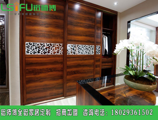 鋁師傅歐式木紋移門全鋁衣柜定制設計效果圖