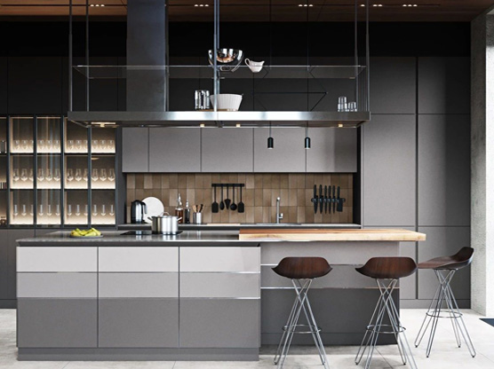 全鋁小吧臺作為隔斷,既能區分空間,又能承擔更多的功能,可以對飲小酌或是與家人聊天。