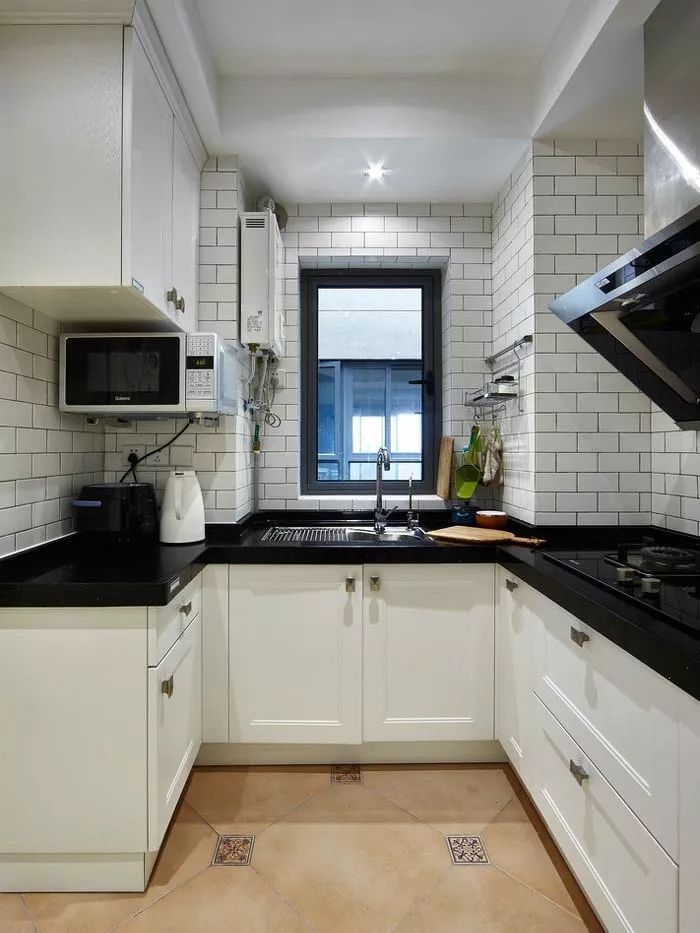 暖色系柜門+白墻+小白磚,北歐的風格清新、典雅、先進,更受年輕家庭的歡迎,明亮的空間會更寬敞。