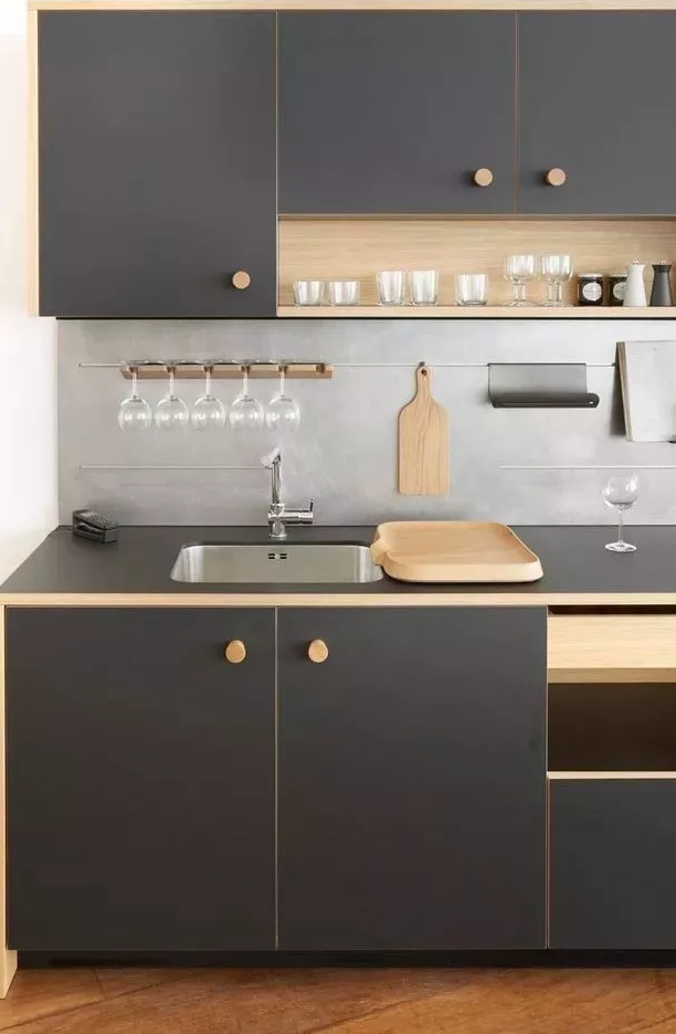 吊柜的留空方式有很多種,可以就在一邊設計留空,讓整個櫥柜增加一些變化。但是要注意一點,不要單單從顏值上去考慮留空方式,最重要的還是實用。比如只是放烤箱的話,留空位置就盡量設計在低處。