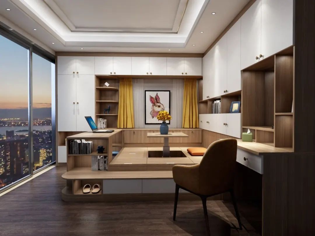配上書柜的全鋁榻榻米收納力一發不可收拾,妥妥的裝下全家藏書外,還能的擺放各種辦公設備,滿足你居家辦公接待及休息的小愿望。