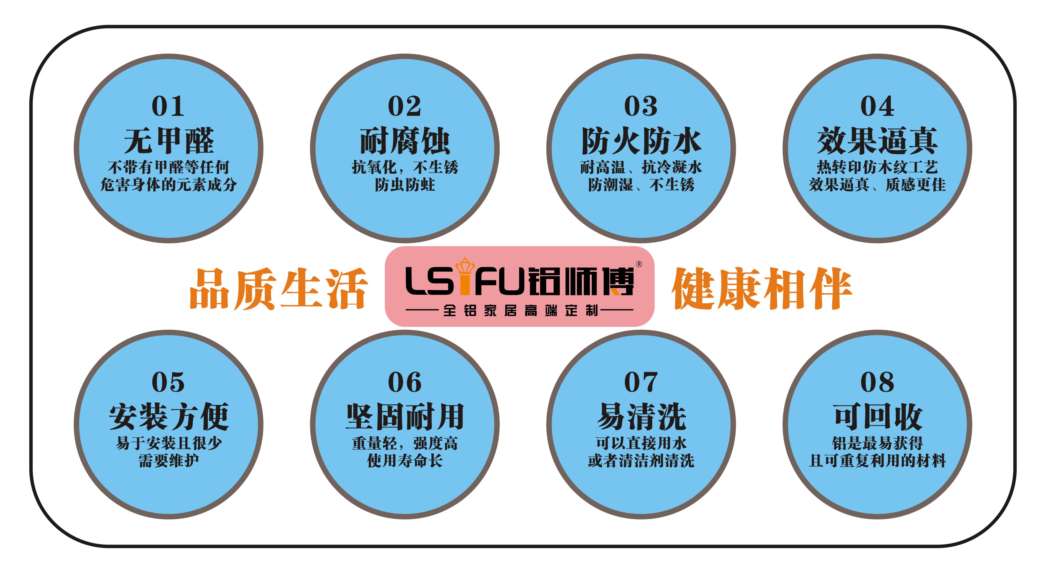 全鋁家居的優勢不止環保這一方面,還有很多的優點,比如保溫、防火、防潮、超強硬度、容易清洗不變形等特性,最重要的就是全鋁家居安裝便捷,徹底的擺脫傳統安裝的繁瑣又不環保。