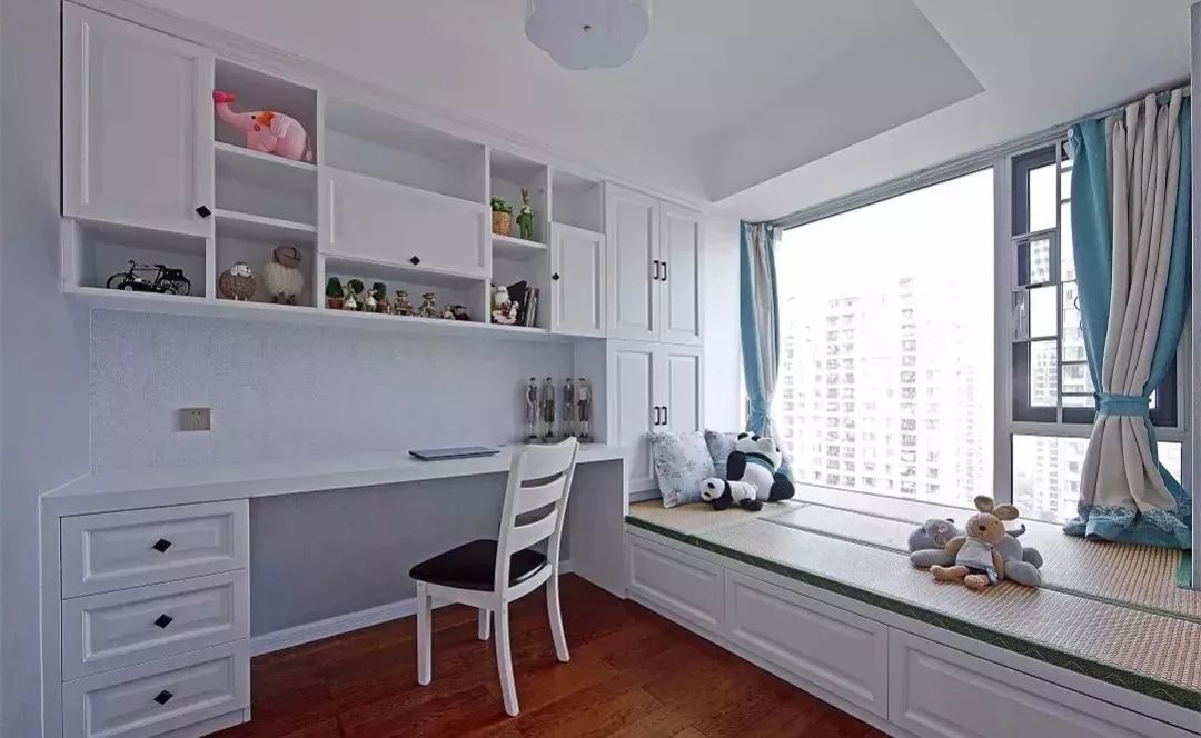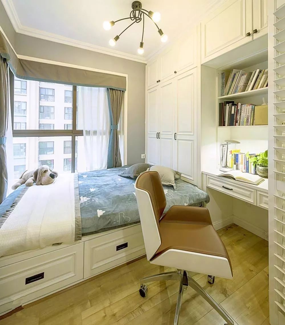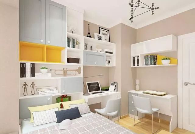 只要伴侶不介意,戶型比較緊湊、房間不夠用的家庭,其實利用臥室的某角落,也足夠打造出功能齊全的工作區(qū)!工作和生活越來越緊密,書房和臥室的界限也正在模糊~兒童房建議可以將收納、休息、學習區(qū)集中起來,再通過家具去形成分區(qū),這樣子孩子們才是真正有自己的小天地,并且井井有條。