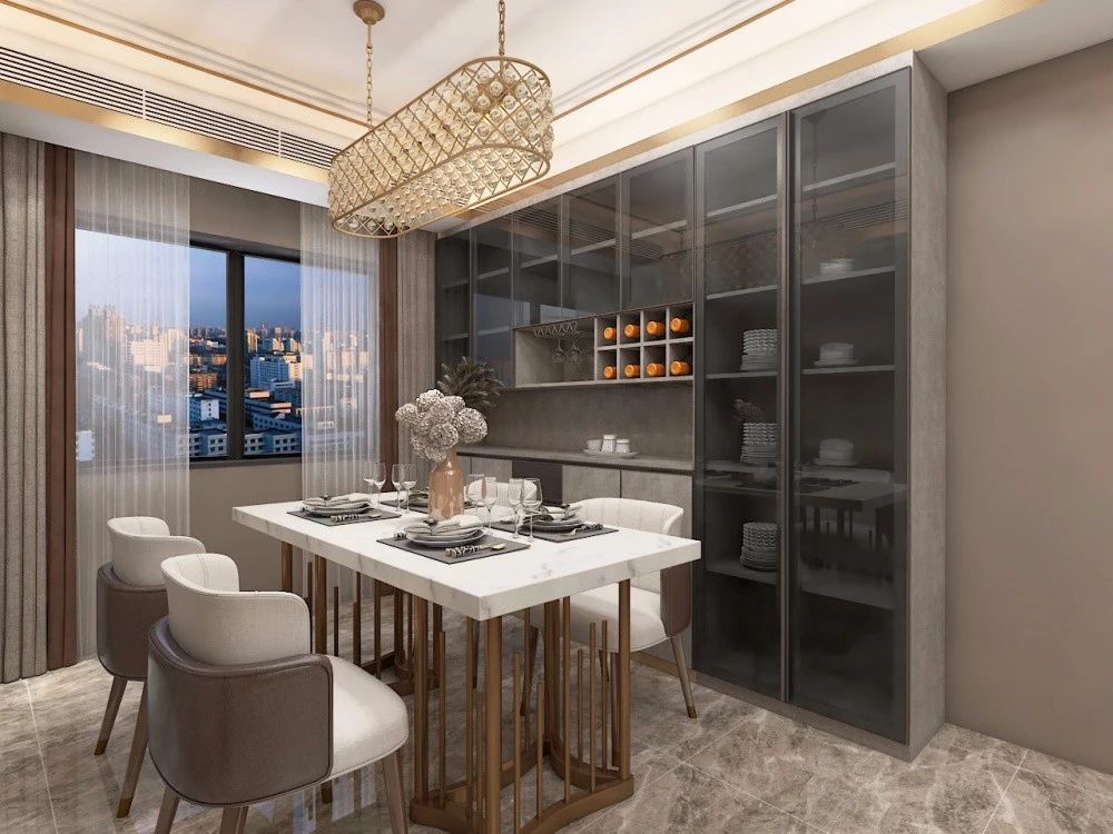 餐邊柜與酒柜都是比較實用的功能,餐邊柜可以方便收納碗碟筷、也可以放置臨時放湯和菜肴,酒柜則可以方便擺放酒或裝飾品;而在實際裝修中,其實有不少的做法是把餐邊柜與酒柜組合起來,這樣可以在有限的空間范圍內把功能融合!