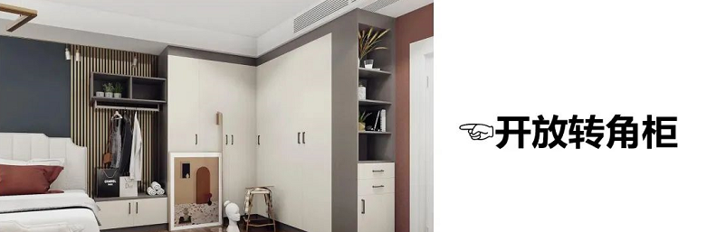 與入戶門平行的墻面,打造一字型衣柜的布局,適合大多數臥室的戶型。市面上一字型衣柜非常多,如何能在衣柜上再演變出許多新功能衣柜。既能滿足我們的衣柜收納各種需求,還能讓空間內顏值倍增。如果衣柜到床的距離大于80cm,可以設計轉角衣柜,利用死角空間,收納能力MAX!
