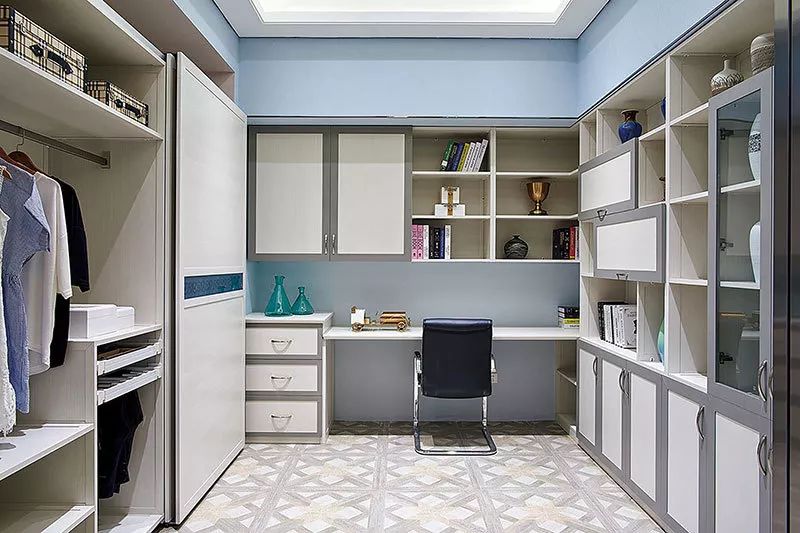 衣柜不僅僅是衣柜,還可以衍生出各種你需要的功能。書桌、梳妝臺都安排進來,適合:需要把工作帶回家的工作達人。