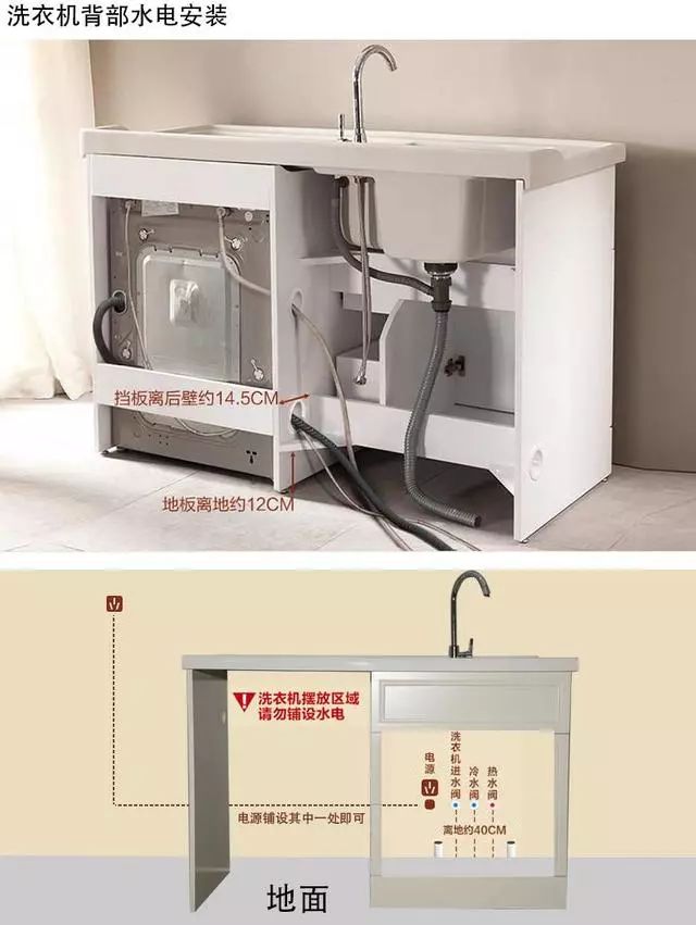 最后,許多朋友想了解陽臺洗衣柜的管線預埋該怎么做,給大家一個水電安裝示意圖: