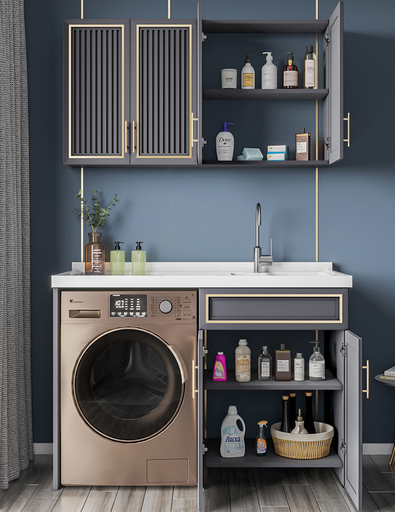 下面是全鋁陽臺洗衣機柜的幾種設計方案