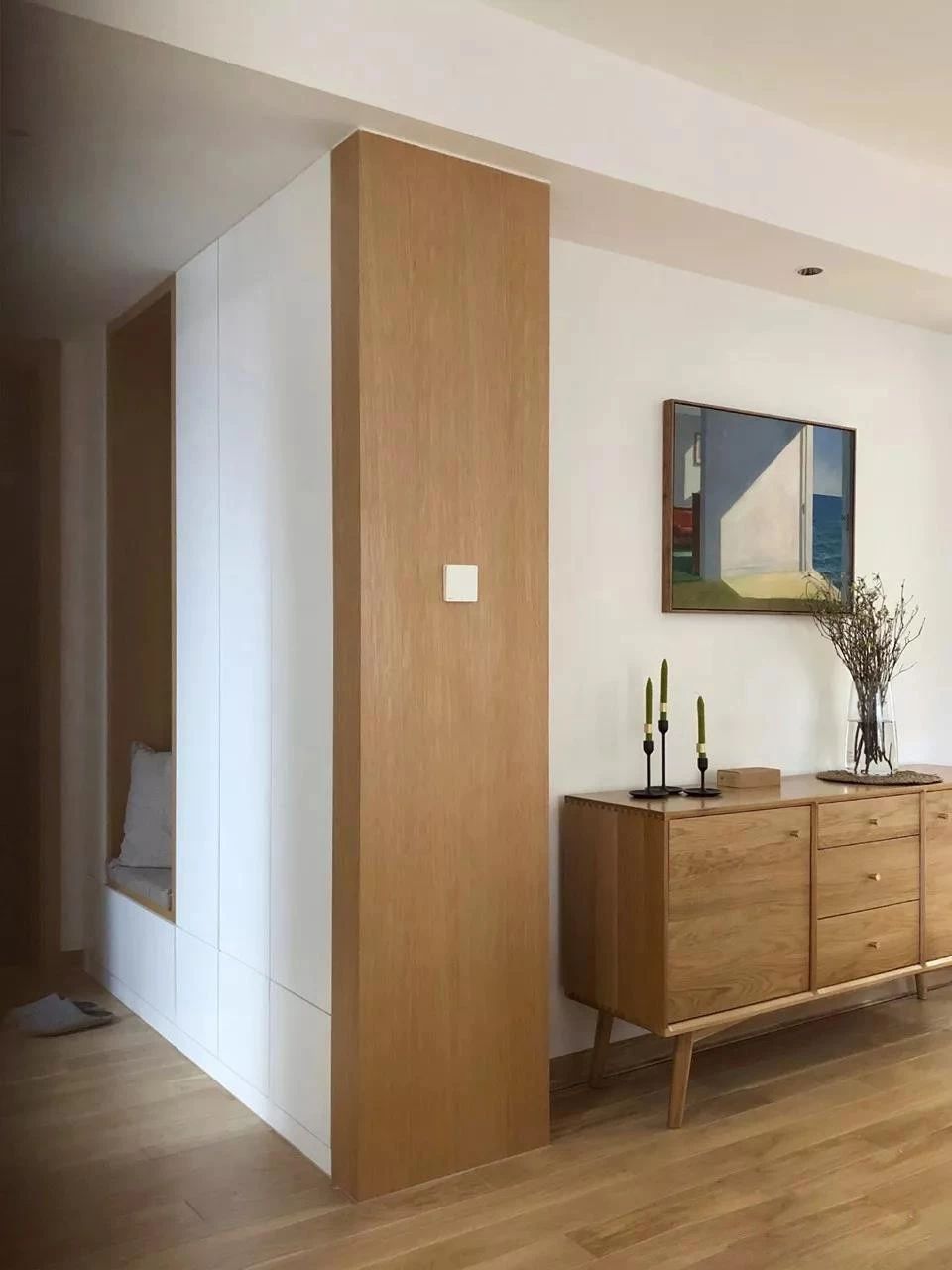 在玄關柜高至腰部的位置挖空設置壁龕,就能順手放置包包或者零碎物件,臨出門時找不到鑰匙卡包等情況就能輕松擺脫。