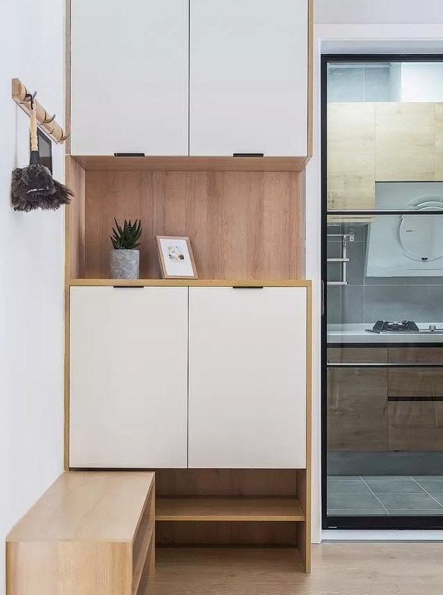 把玄關處的鞋柜換成翻轉式或者按壓式,會比抽屜和柜門方便很多。