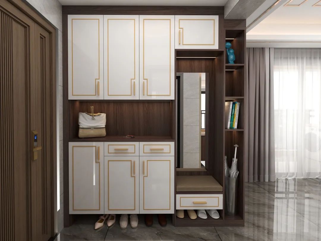 飾品宜精不宜多,由于收納的物品零碎雜亂,在全鋁鞋柜上擺放太多的飾品,很可能取用物品的時候會將飾品打碎;如果是懸掛的物品好于擺件,但有撞頭的可能,建議玄關處的家具或墻壁本身,就兼具裝飾的功能,既節省空間,又俏皮有趣。
