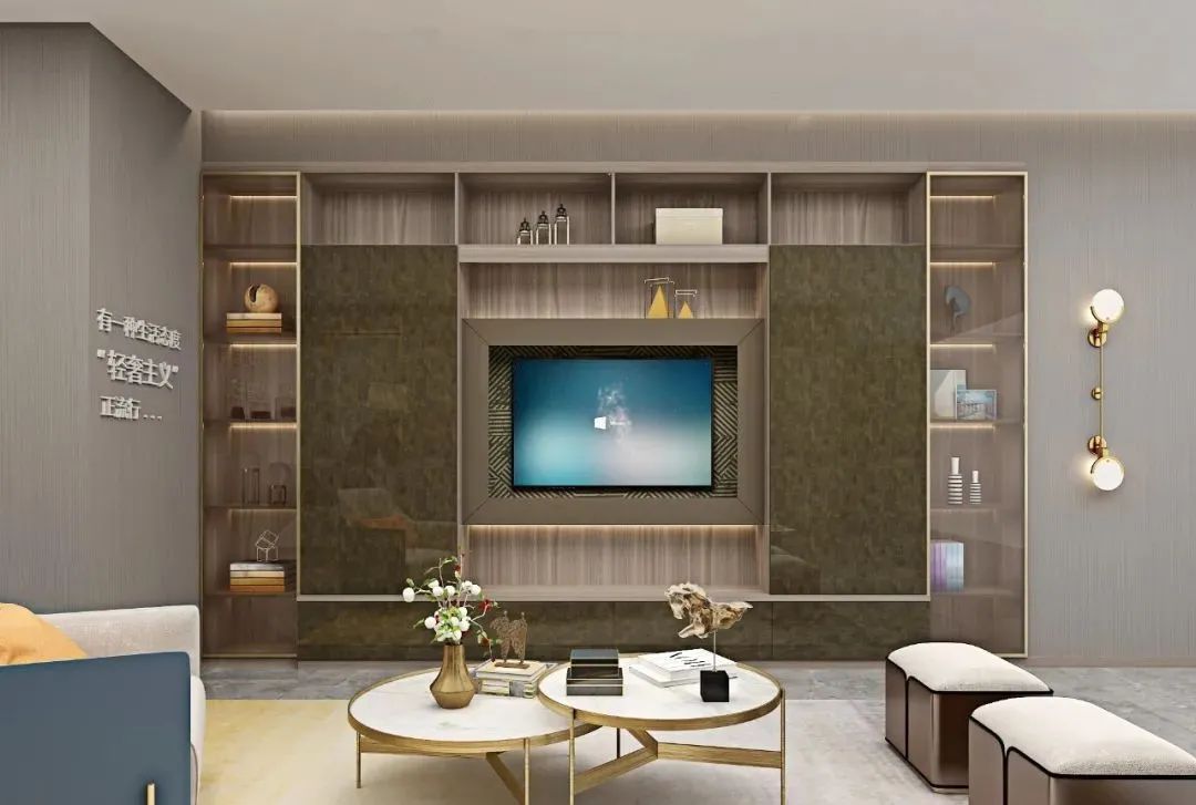 利用系統收納層架、儲物柜等不同組合的柜子,置于墻上,不僅收納空間增大,地面空間也更為寬闊。如在沙發墻上定制儲物柜,吊裝高度較高,不會讓空間顯得壓抑,同時也增加了空間收納。
