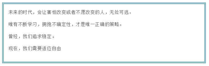 你看看旁邊比你大30歲的同學就會知道,這個世界上,再也沒有穩定的工作。