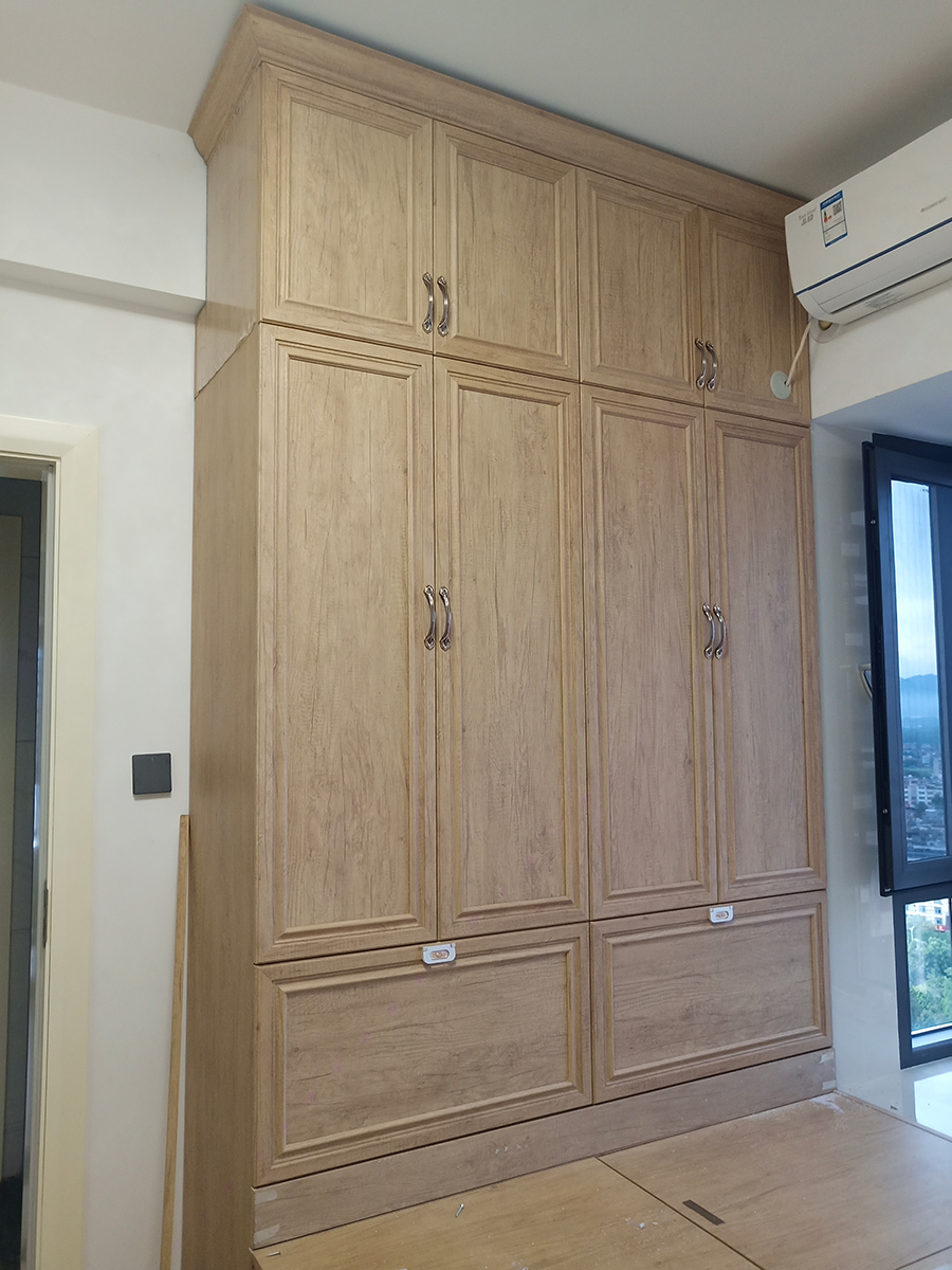 陽江的吳先生是在網(wǎng)上看到我們鋁師傅全鋁家居的,通過咨詢知道陽江有很多客戶都在我們廠定制全鋁家具,還到客戶家看安裝效果,看過之后非常滿意,對(duì)這種有著鋁的內(nèi)涵,木質(zhì)外表的新型材料贊不絕口。第二天就約了我們上門量尺,吳先生的太太喜歡木材原色,所以家具主色選的是北歐榆木,非常接近木材,紋理逼真。我們一起看看安裝效果: