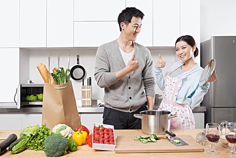 島臺式全鋁櫥柜是屬于開放性廚房的一部分,可以在中間島臺上洗菜,吃飯,島臺同時也是一個隱藏柜體,可以收納餐具或清潔用品。