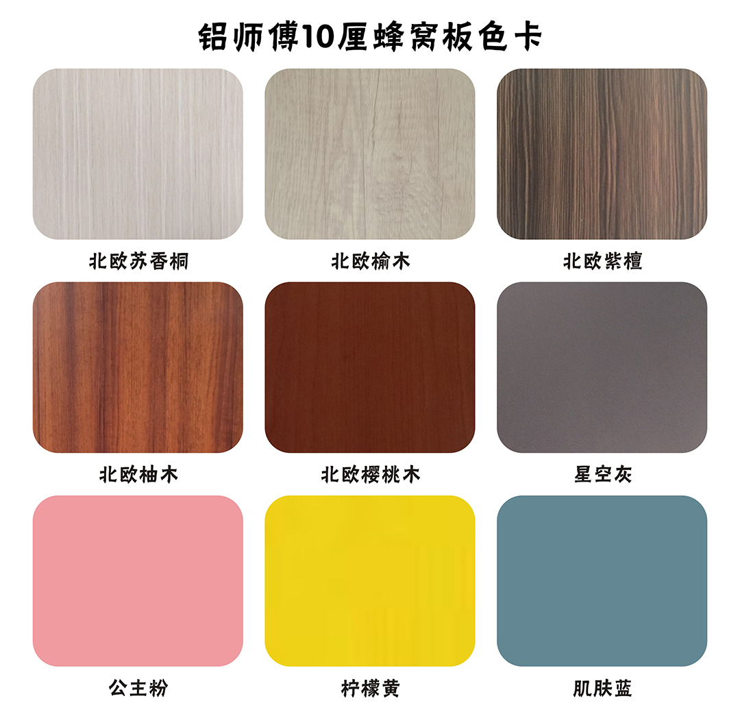同時我們歐格美鋁業、鋁師傅全鋁家居還供應10厘和16厘鋁蜂窩板,顏色種類繁多,歡迎來電400-8922-678咨詢。