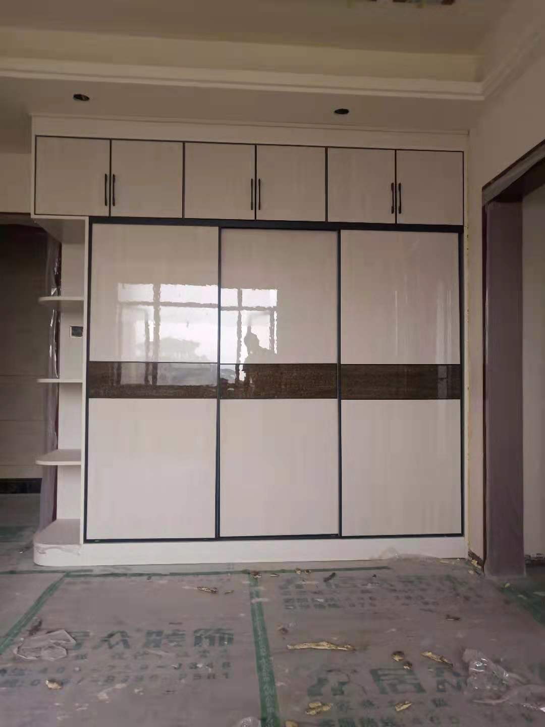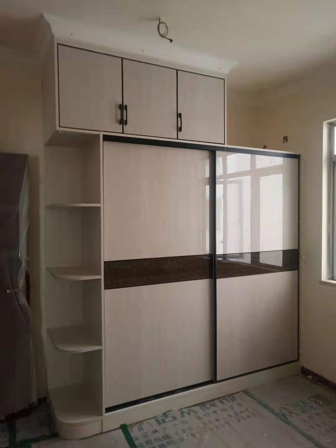 全鋁移門衣柜,吊柜的一邊留作空調位,靠門轉角做開放式圓弧設計,老人小孩出入更安全。