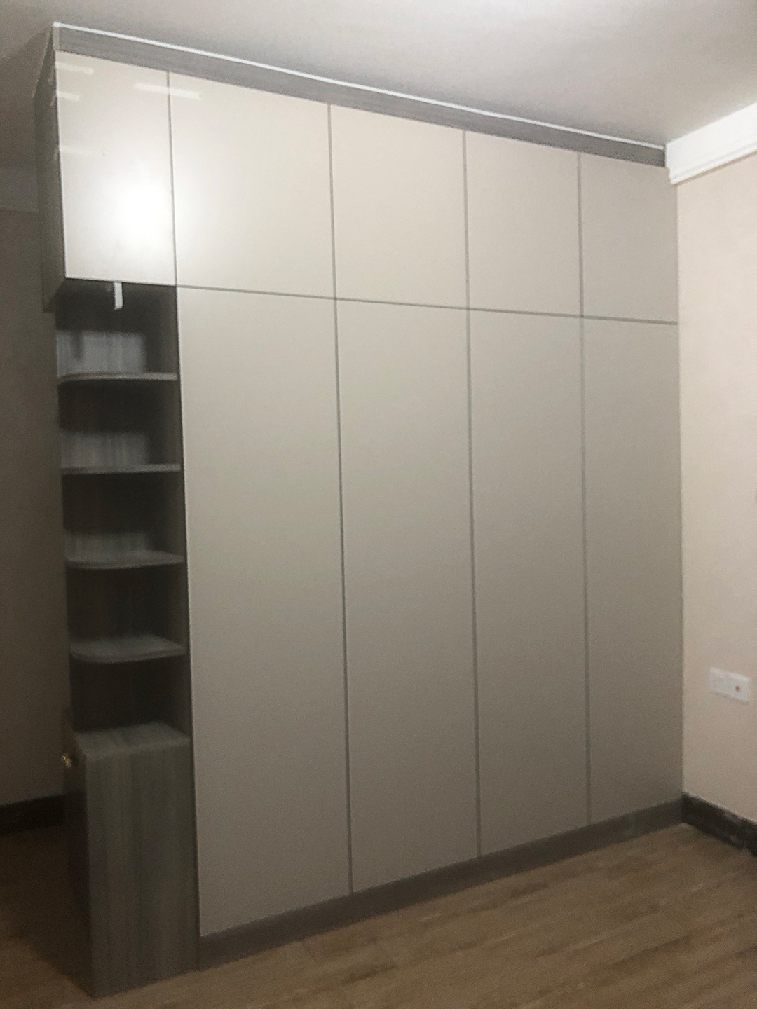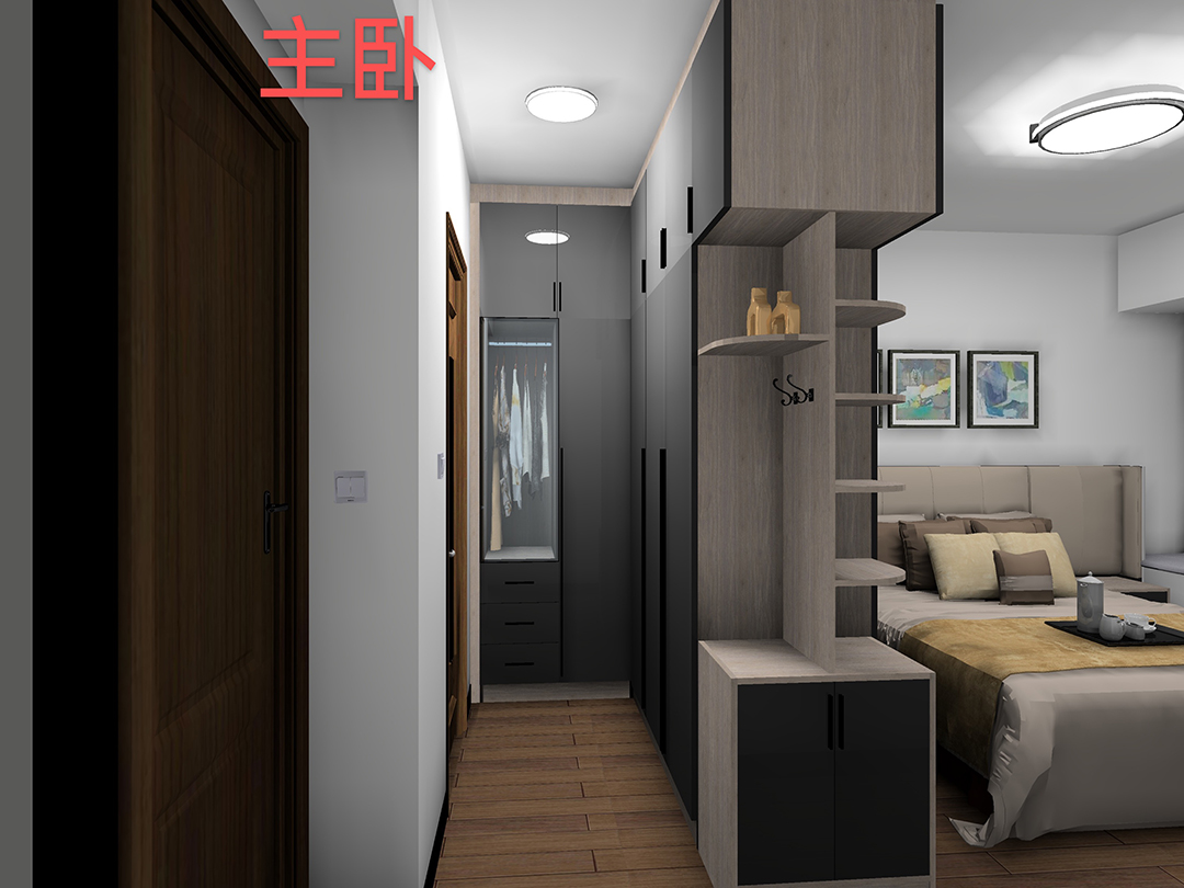 衣帽間背面靠床的一側做的是假門,假門用的是赴港卡其色更溫馨。