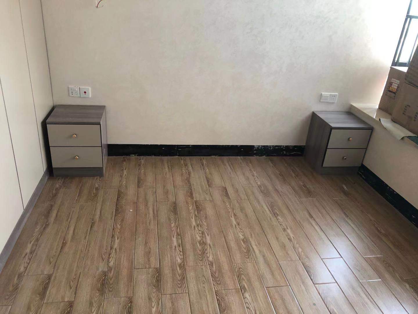 主臥還定做了兩個全鋁床頭柜,床頭柜顏色也是北歐松木灰搭配膚感卡其門板。