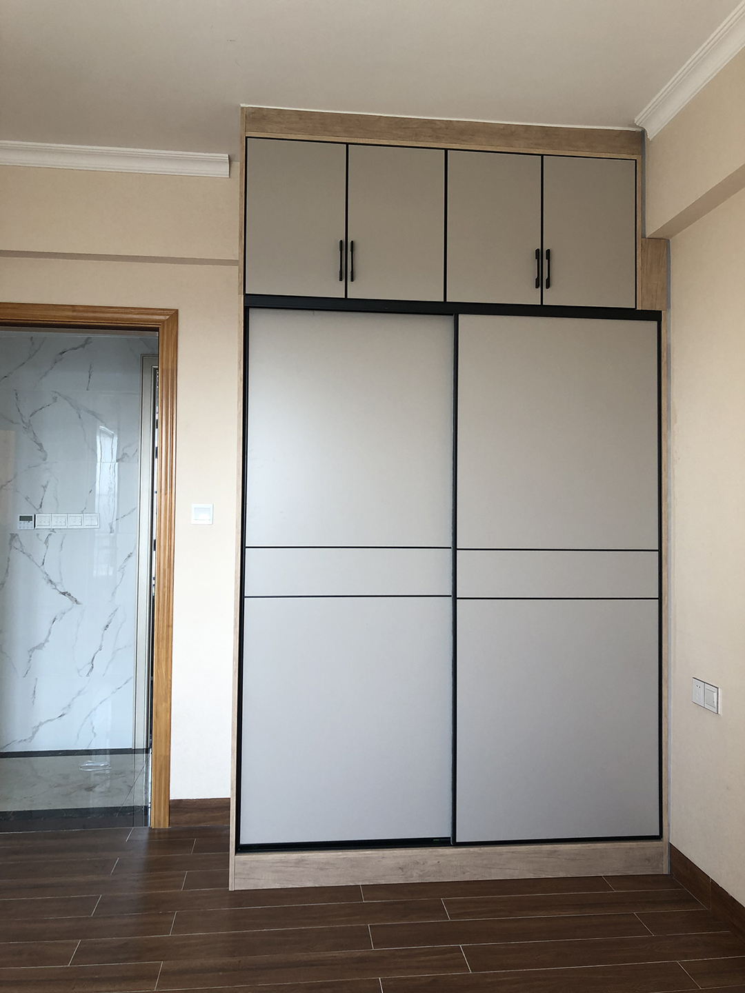 主人房衣柜采用上掩門下推拉設計,一開一關在節省空間之余,多種的使用方式,給收納更多的靈活性和趣味性。