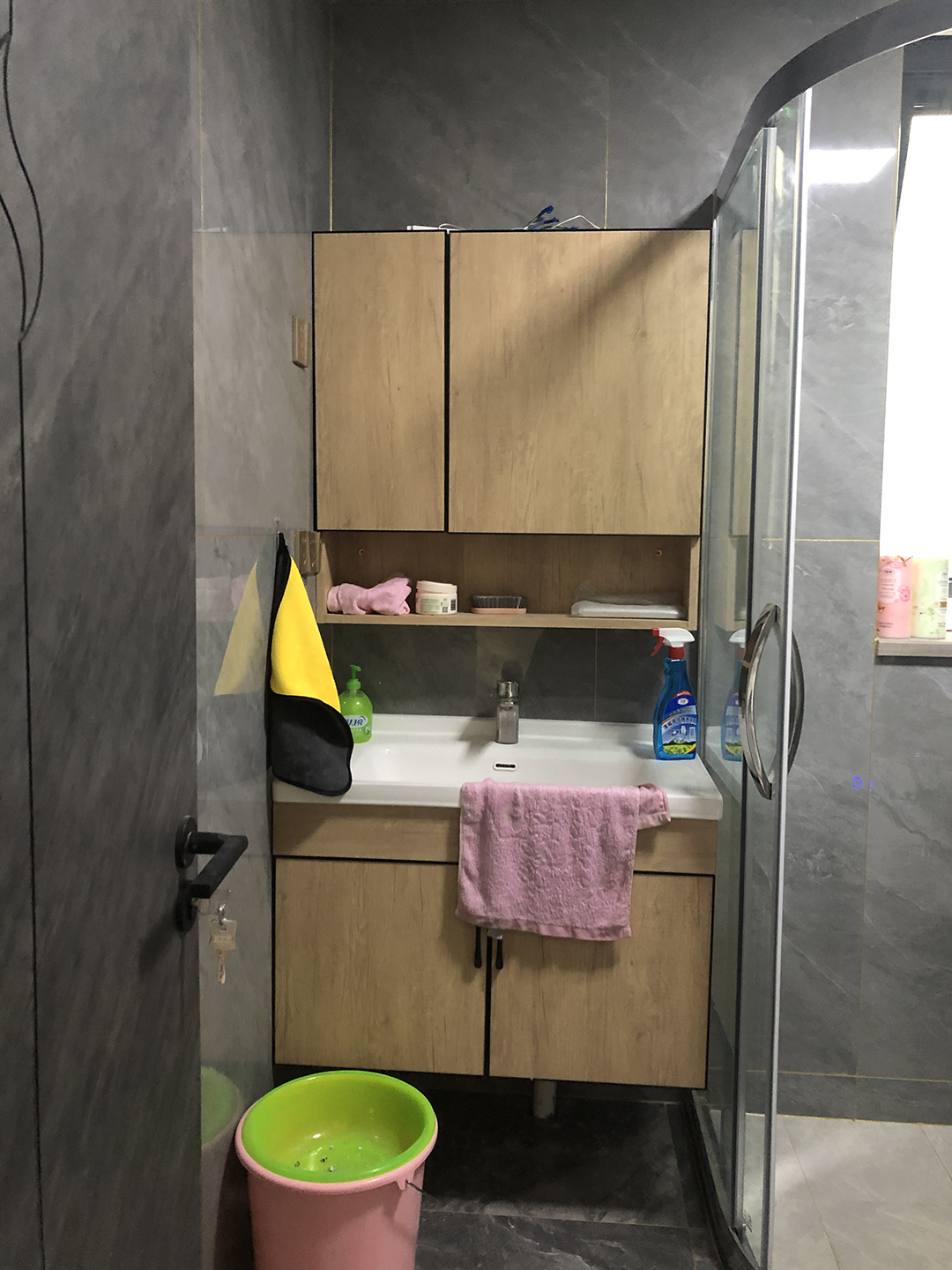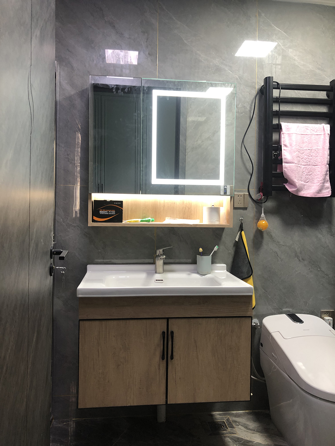 全鋁壁掛式浴室柜,好搞衛生,簡單大方,鏡柜裝了智能燈帶,顏值瞬間提升好幾個檔次。