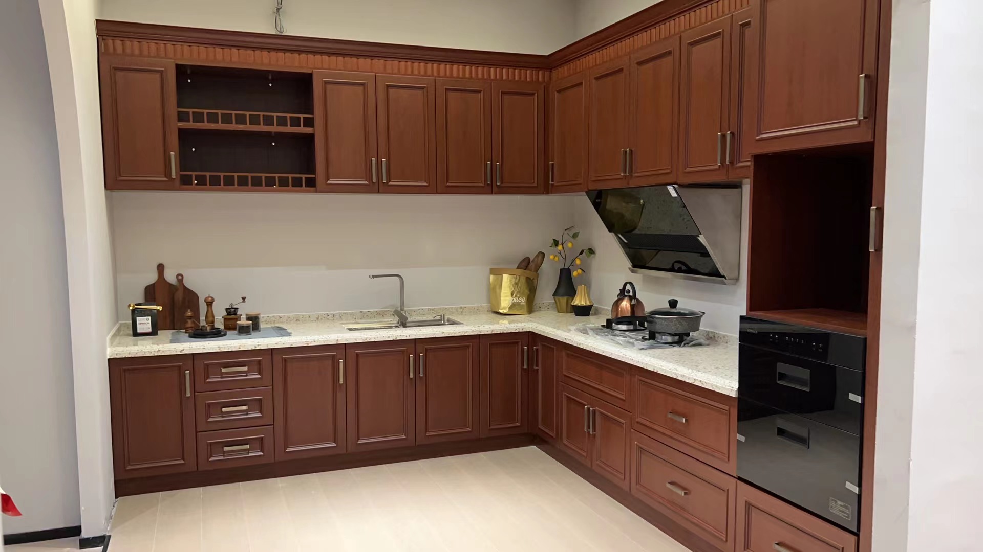 廚房采用的是櫻桃木,門板用的是80框,有種偏中式的感覺,喜愛潮流的同時不忘“古色”。
