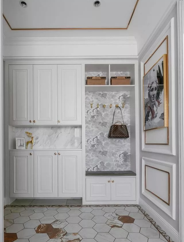 玄關空間要充分利用起來,鞋柜不要半截,建議做到頂,這樣就把上方空間都利用起來了,等你真正入住,就知道家里東西多了,多點儲物空間是好事。