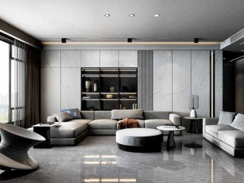 家居空間的墻面和地面都需要大面積鋪貼,大規格的巖板紋理展現的更加的完整,在實際鋪貼及運用過程中可塑性和變化性更大,也減少了鋪貼及施工過程中的留縫等環節。
